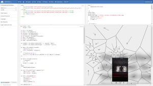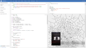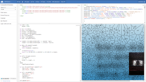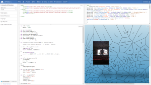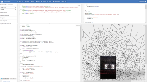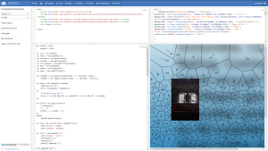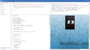JSFiddle, a tool to test JavaScript, CSS, HTML or CoffeeScript online with a code editor. Visitors are allowed to alter the code, and give suggestions for an updated version of the work. Different versions will be saved regularly.